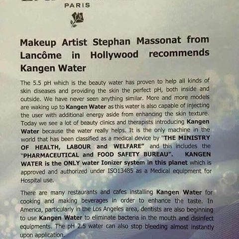 Stephan Massonat dari Lancome pun mencadangkan penggunaan air Beauty Water pH5.5 dari mesin Kangen Water.