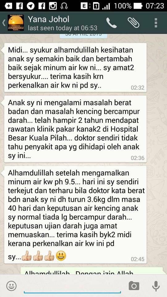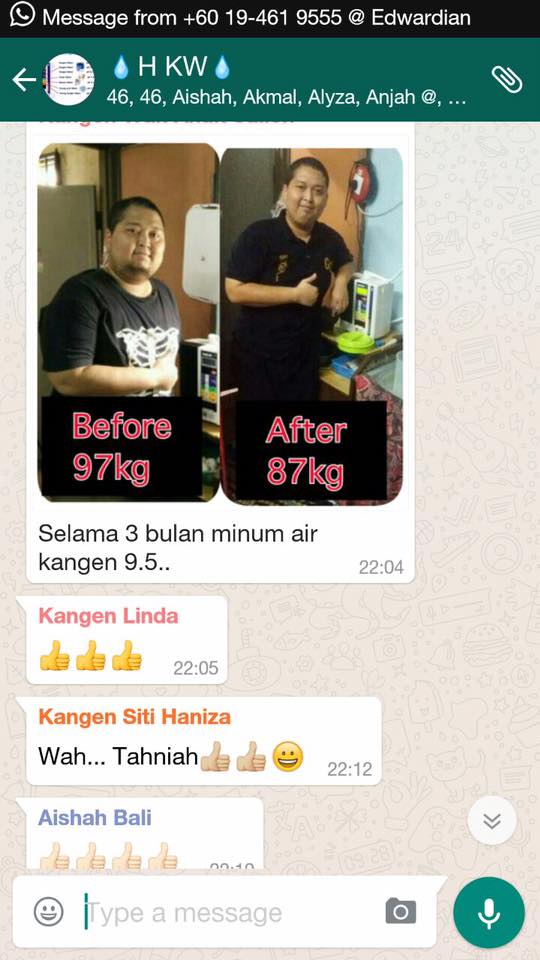 menunjukkan kesan yang hebat setelah mendapat rawatan terapi air kangen dan