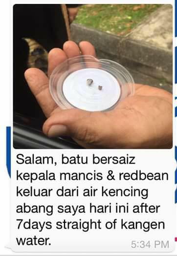 Batu karang keluar setelah menggunakan air Kangen Water secara berterusan selama 7 hari.
