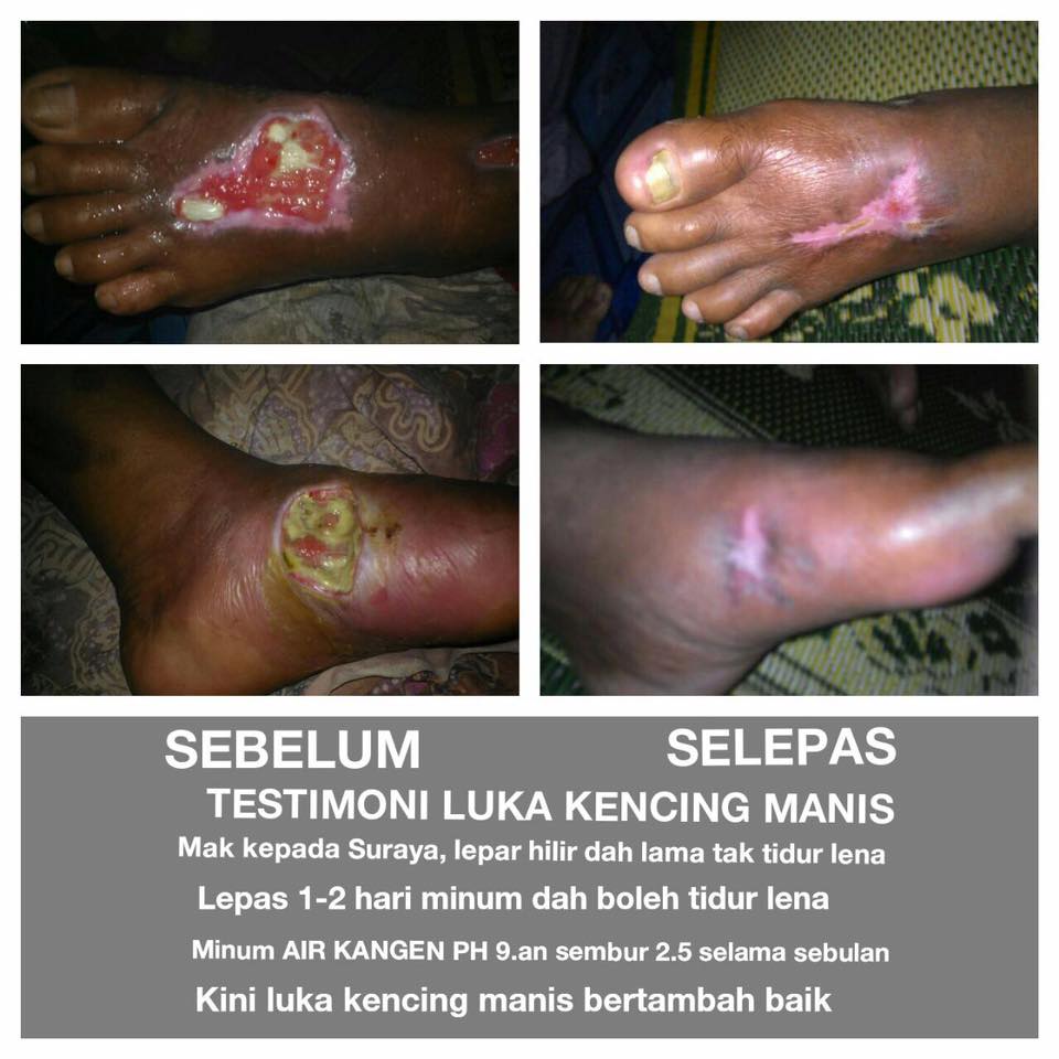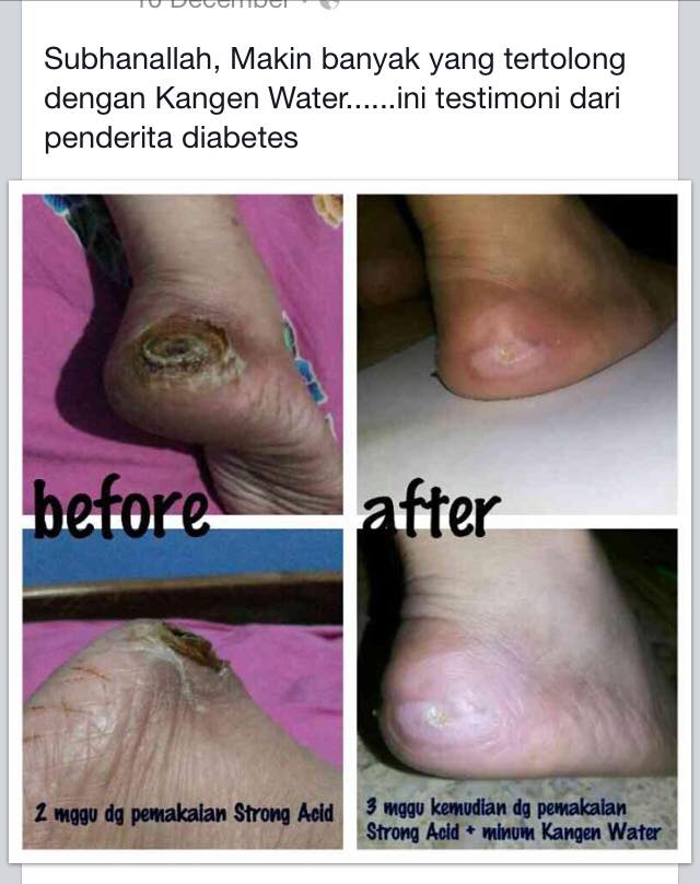Pesakit Diabetes menunjukkan testimoni beliau setelah menyembur Strong Acid di bahagian luka dan minum Kangen Water.