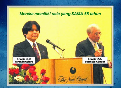 Kedua-dua mereka kelihatan berbeza sekali. Di sini dapat dilihat Mr. Oshiro kelihatan muda berbanding Mr George iaitu Pengasas Enagic USA yang baru sahaja menggunakan Kangen Water sebagai rutin hariannya.